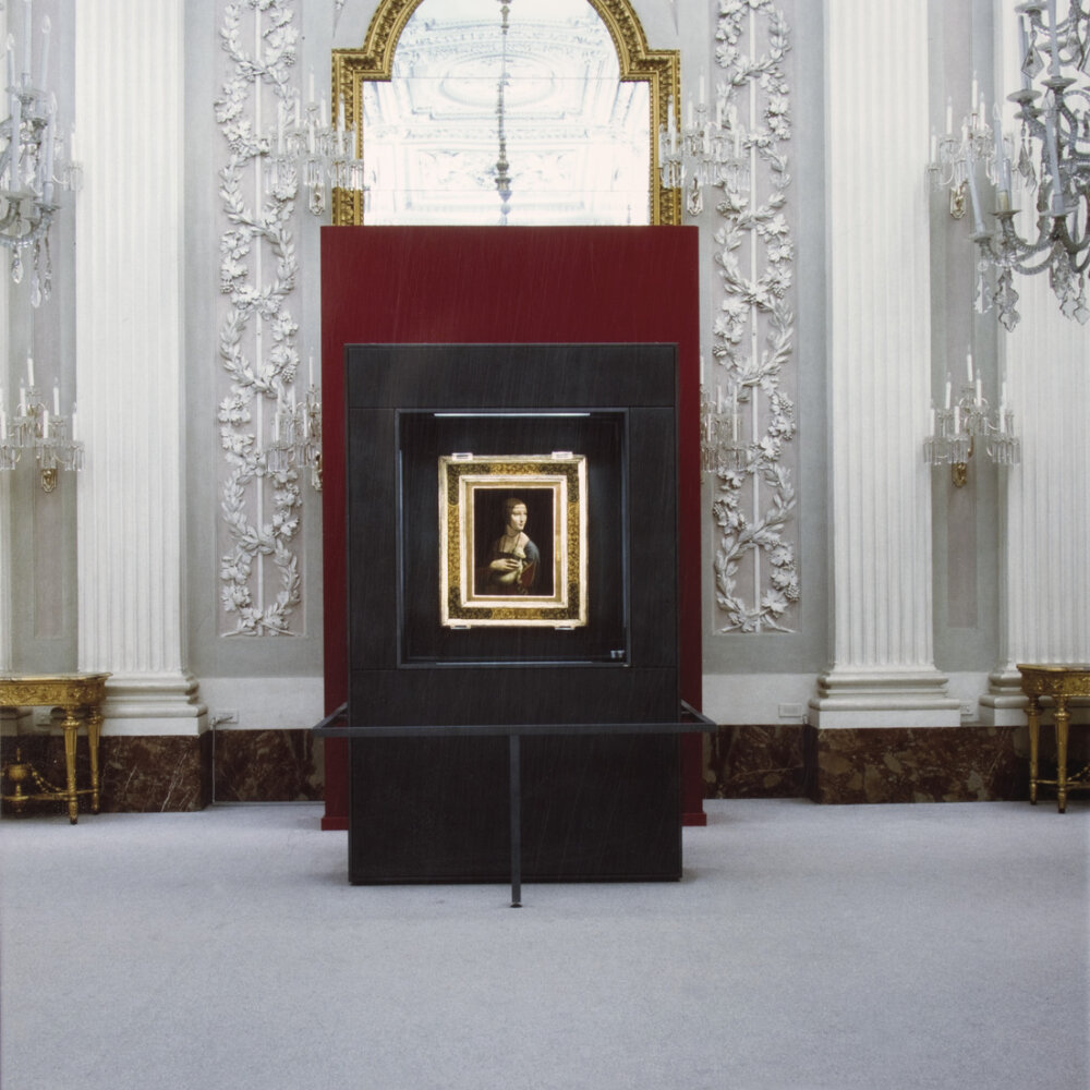 Unsurprisingly, Italy proudly hosts a great many works by its famous son. Milan is home to a number of famous Leonardo paintings, including The Last Supper, at Santa Maria delle Grazie. In 2008, Goppion had the great honor of being trusted with realizing the exhibition elements for this legendary painting. In addition to providing 4 frame cases for sketches and prints present in the exhibit, we also produced a low, solid metal, wall-anchored barricade, which provides accompanying information and interpretive panels.
