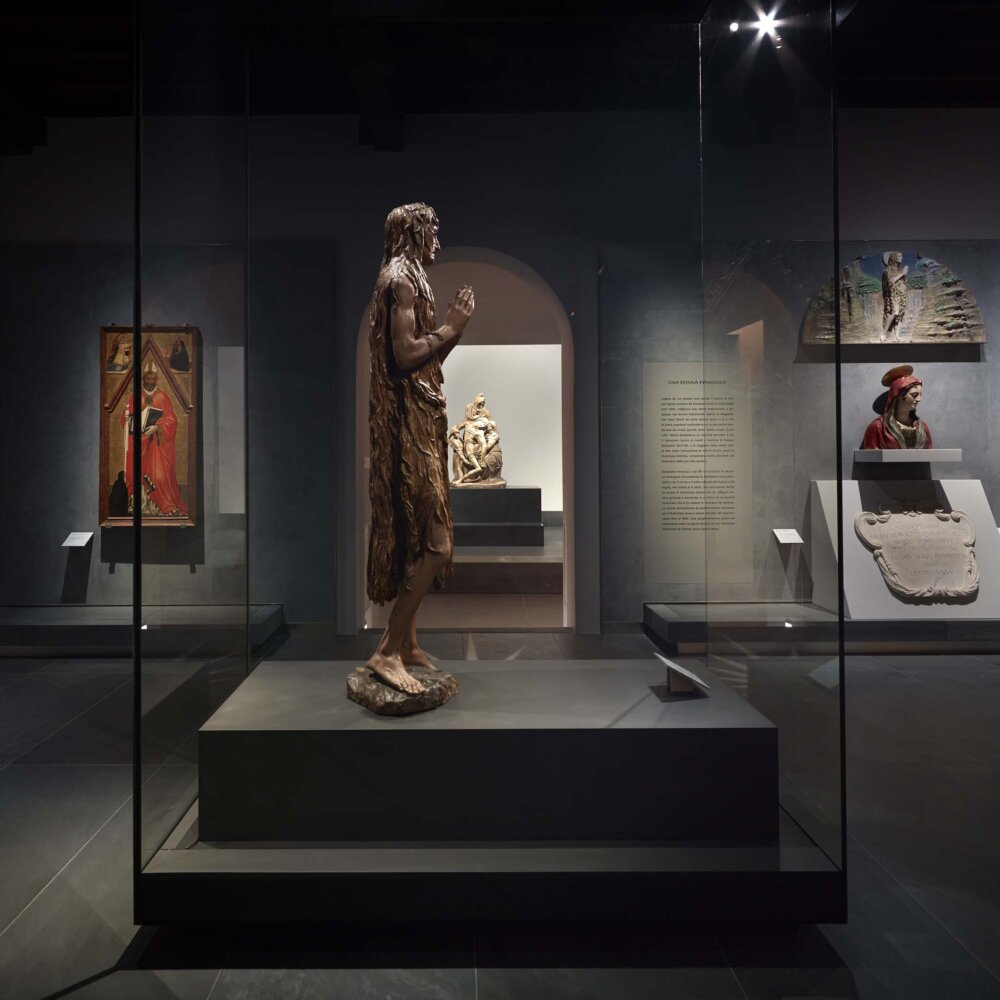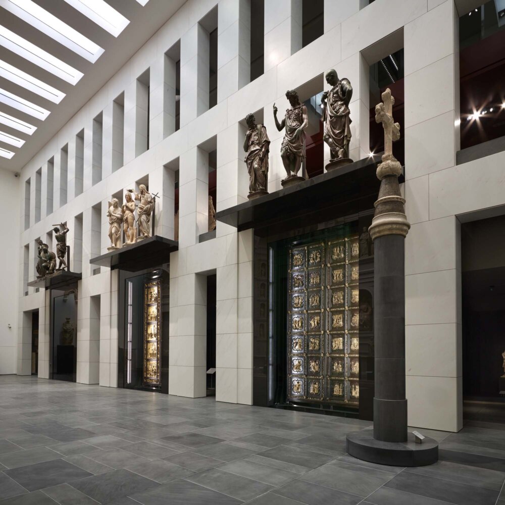 The restoration of the Museo dell’Opera del Duomo more than doubled the gallery area of the original museum, from 2,500 to 6,000 m2. Architectural elements and exhibition spaces were designed of a piece, resulting in a uniquely harmonious museum that protects and displays over 750 works that epitomize Renaissance art. The entire museum layout was revolutionized by the museum’s director, Renaissance scholar Monsignor Verdon, in order to recount, as he notes, “the extraordinary tale of the sacred and profane events associated with the monumental complex consisting of the baptistery, the cathedral, the dome and the campanile.”